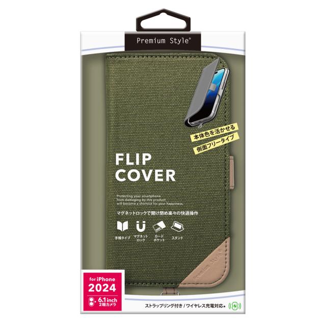 PGA PG-24AFP12GR iPhone 16用 フリップカバー(キャンバス/カーキー)[PG24AFP12GR] 返品種別A