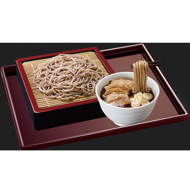 炭火焼の風味がUPしてリニューアル登場。冷凍食品ならではのメニューとなります。合鴨の胴がらを炊き出したスープとオイルを使用した、鴨特有の後を引く味わいのつゆに仕上げた、こだわりの鴨南蛮そばです。炭火焼きした香ばしい合鴨ロース肉と白ねぎ入りです。炭火焼きの風味がアップしました。