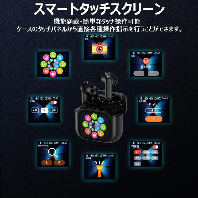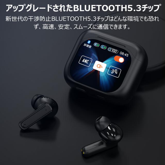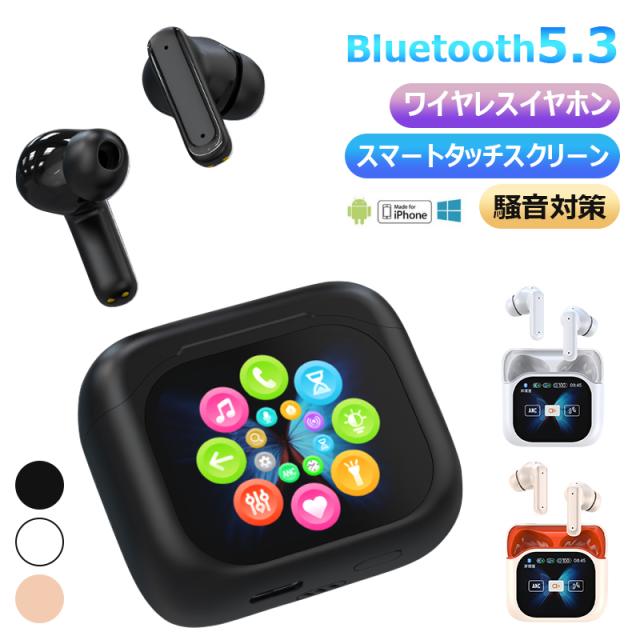 ワイヤレスイヤホン BLUETOOTH5.3 スマートタッチスクリーン 騒音対策 TYPE-C充電 3color 高音質 超軽量 電池残量表示 人間工学設計 瞬間接続