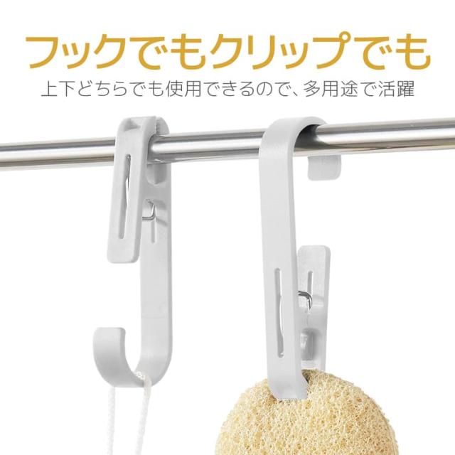 クリップにハンギングフックを備え、上下どちらでも使用ができるフッククリップ5個セットです。
