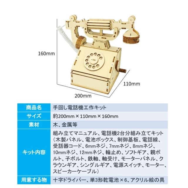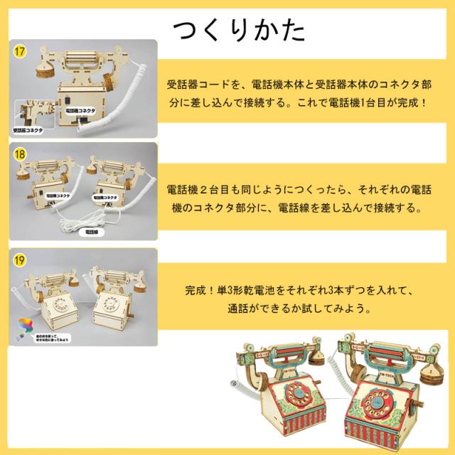 工作キット 電話機 手回し おもちゃ DIY 黒電話 子供 小学生 自由研究 夏休み 冬休み 電気 音声 STEM教育 実験 制作 理科 科学 知育玩具 小学校 プレゼント 教材