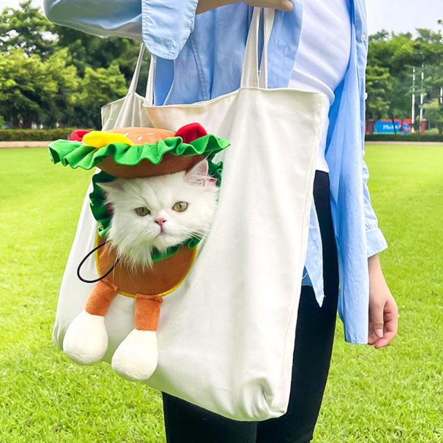 ペット バッグ 猫バッグ ポータブル ハンバーガー 小型犬 ペットリュック ショルダーバッグ トートバッグ ペットキャリー