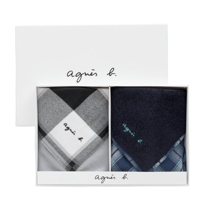【ブランドギフトBOX入り】 アニエスベー メンズ スマホ・メガネ拭き ハンカチ & 表ガーゼ・裏タオルハンカチ 【agnes b】