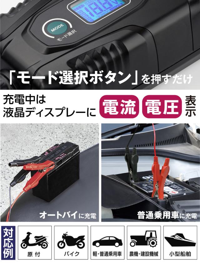 原付、オートバイ、乗用車、農耕機、小型船舶など、あらゆるバッテリーに最適充電!