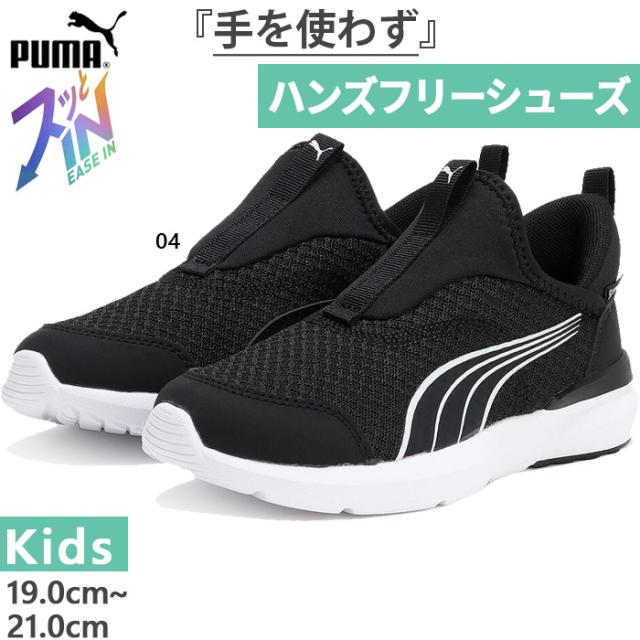 【3月上旬入荷予約商品】 立ったままスッと履ける プーマ ジュニア キッズ ボーイズ クルーズ プロフォーム イーズイン スニーカー スリッポン ハンズフリーシューズ ブラック 黒 送料無料 PUMA 310250