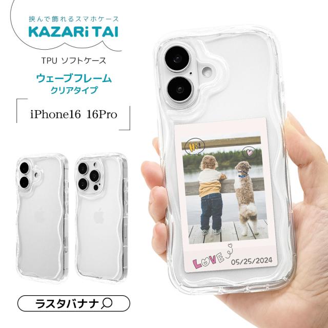 【送料無料】iPhone16 16 Pro ケース カバー ソフトケース TPU クリア ウェーブ 写真が挟める チェキ トレカ 推し活 KAZARi TAI アイフォン ラスタバナナ 8154IP461TPCL 8234IP461PTPCL