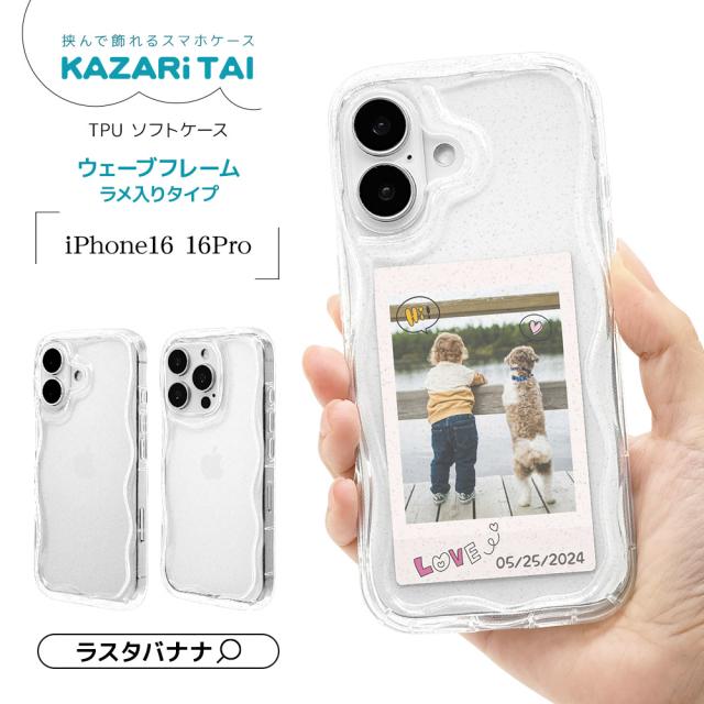 iPhone16 16 Pro ケース カバー ソフトケース TPU ラメクリア ウェーブ 写真が挟める チェキ トレカ 推し活 KAZARi TAI ラスタバナナ