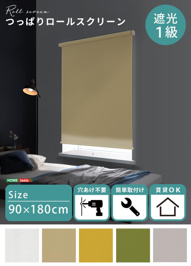 ロールカーテン 幅90cm 遮光タイプ つっぱりロールスクリーン 5色対応 ロールスクリーン 遮光 1級 カーテン スクリーン 突っ張り式 穴あけ不要 賃貸OK 目隠し 間仕切り リビング シンプル おしゃれ 模様替え