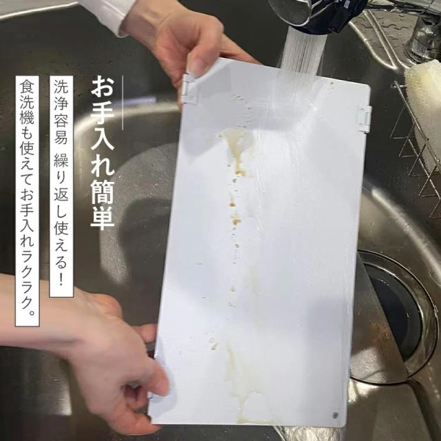 面倒な組み立ては一切不要!使いたい時にサッと開いて立てるだけ、簡単設置!使い終わったらコンパクトに収納、省スペース!設置と片付けが簡単なため、調理後にすぐ洗えば調理台周りを清潔に保てます。
