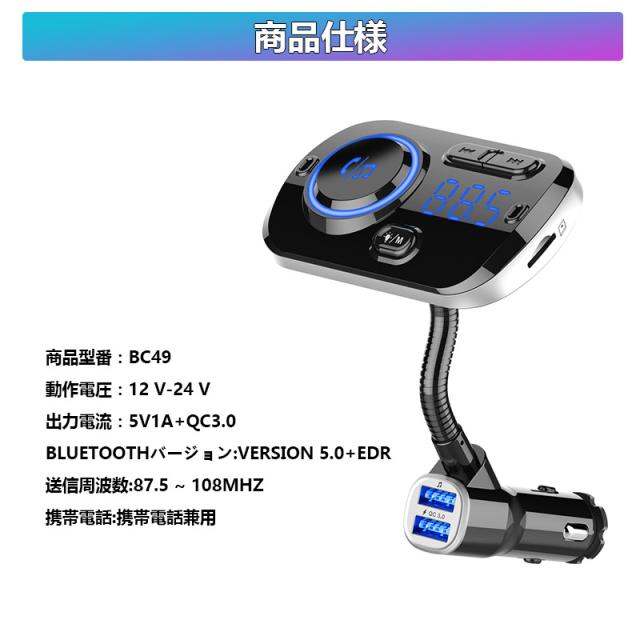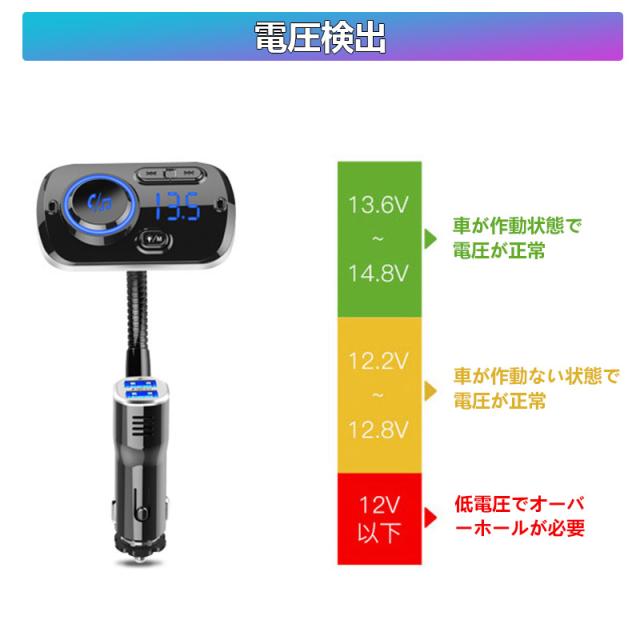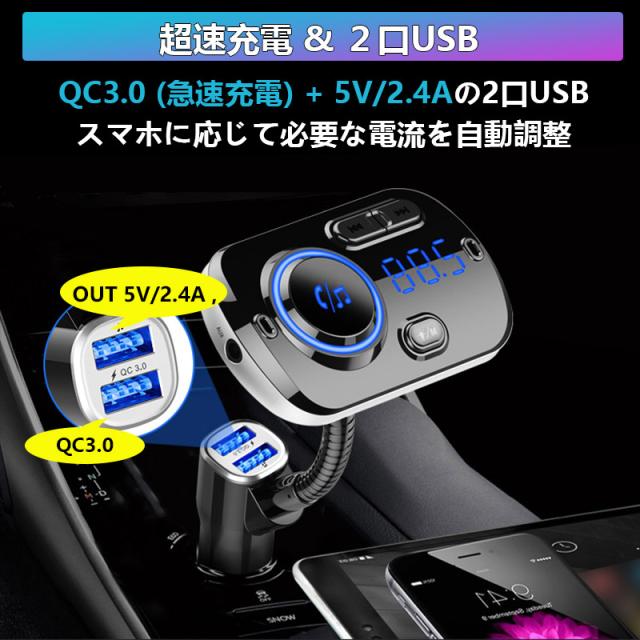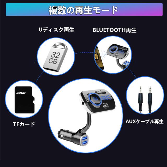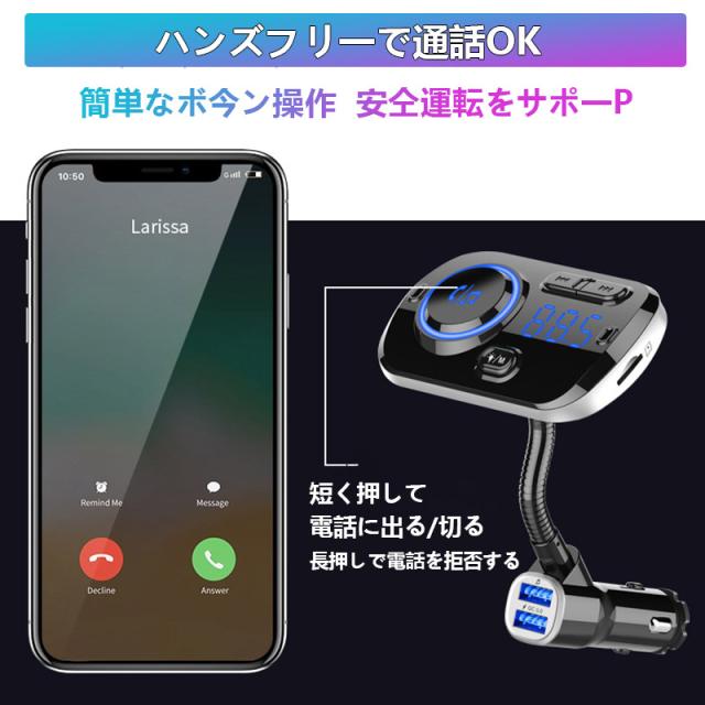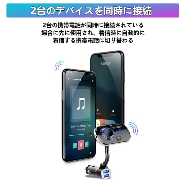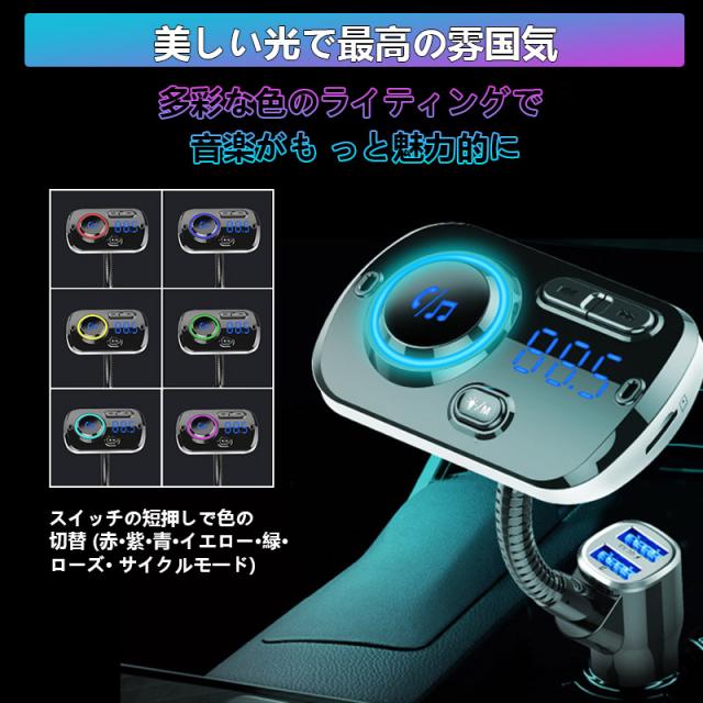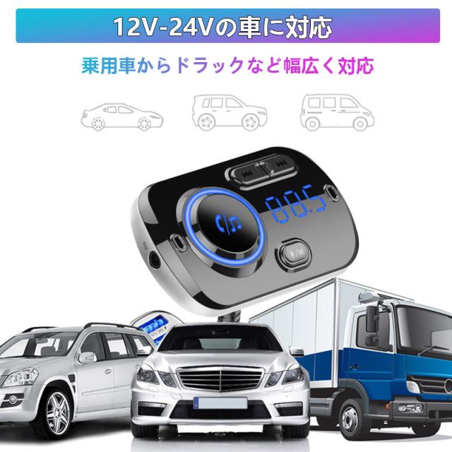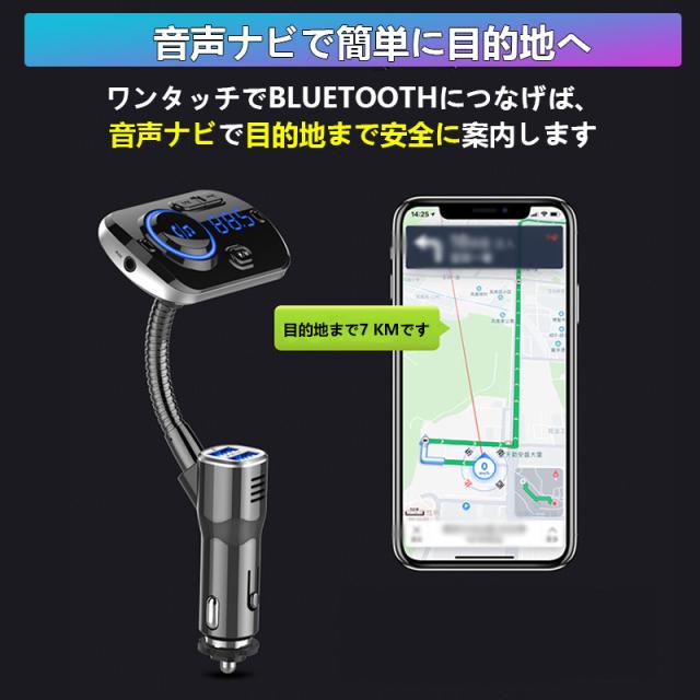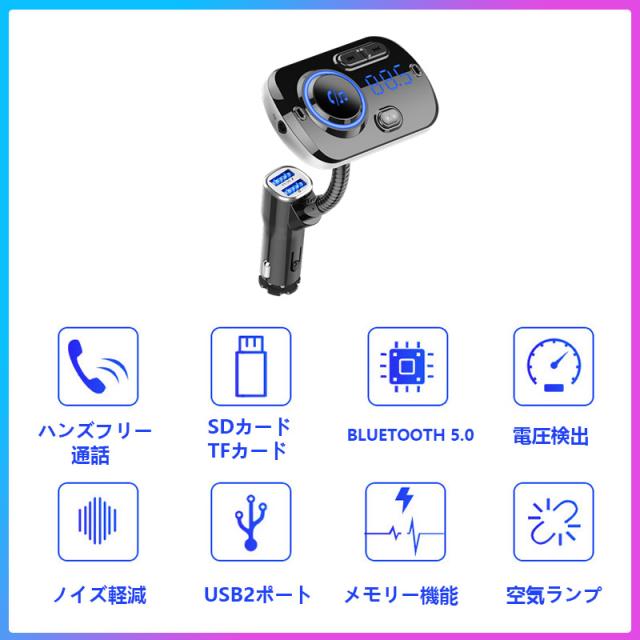 FMトランスミッター bluetooth 5.0 車 USB 充電 高音質 iphone 有線 mp3 SDカード TFカード シガーソケット