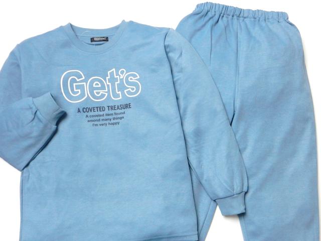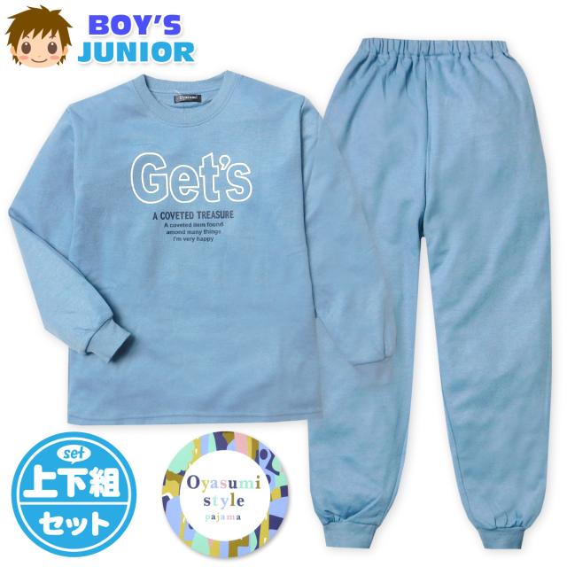 【送料無料】男児 ジュニア 長袖 パジャマ ダンボールニット 上下組 スウェット 丸首 英字ロゴ バックポケット 子供服 男の子 140cm 150cm 160cm my-0085b-bl【メール便対応】