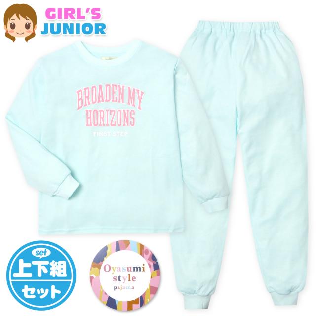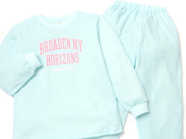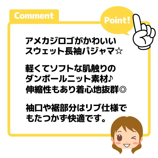 【送料無料】女児 ジュニア 長袖 パジャマ ダンボールニット 上下組 スウェット 丸首 アメカジロゴ バックポケット 子供服 女の子 140cm 150cm 160cm my-0086b-sx【メール便対応】