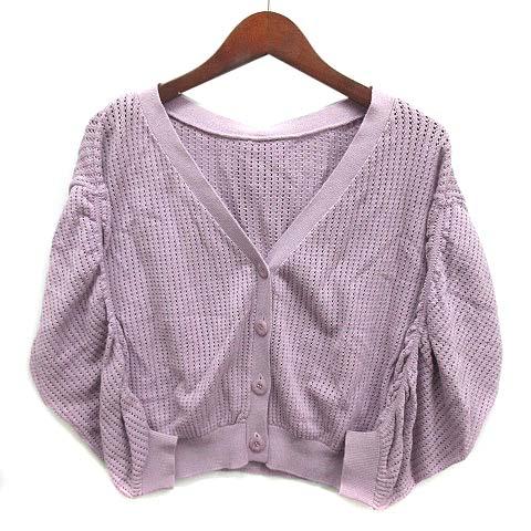 【中古】アプワイザーリッシェ Apuweiser-riche バックリボン リネン混 ニット ボレロ カーディガン 七分袖 ラベンダー 2 レディース