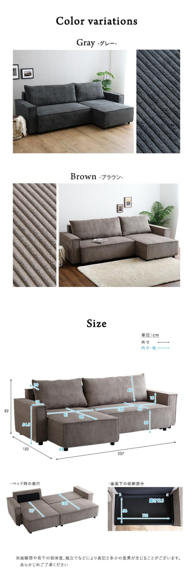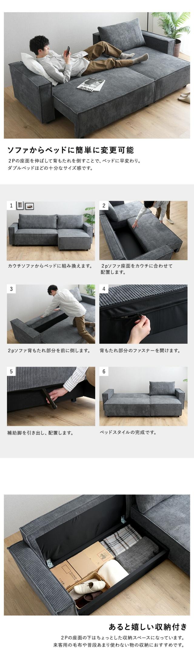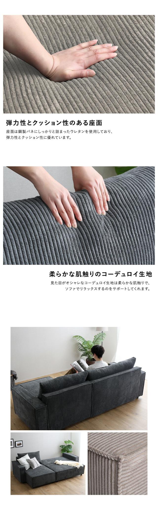 カウチソファ 3人掛け 三人掛け 収納付き コーデュロイ生地 コーナーソファ ソファベッド ローソファ フロアソファ 脚付き レイアウト自由 ソファ ソファー 背もたれ 一人暮らし 新生活 【代引不可】