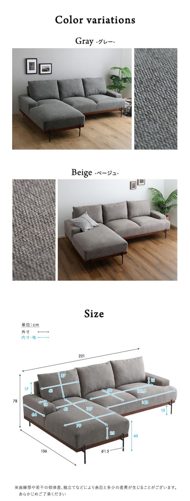 スチール脚がスタイリッシュ カウチソファ 3人掛け 三人掛け 脚付き コーナーソファ ソファベッド ハイタイプ フロアソファ ソファ ソファー 背もたれ 新生活 【代引不可】