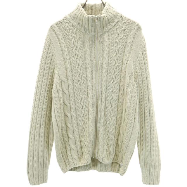 セーターハウス スペイン製 ニットジャケット M グレージュ SWEATERHOUSE ケーブル編み メンズ
