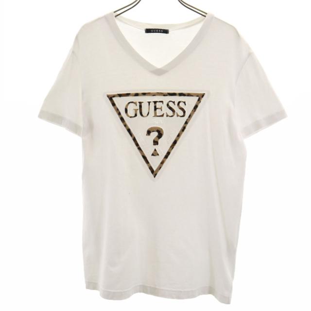 ゲス エンボスロゴ 半袖 Vネック Tシャツ M ホワイト Guess メンズ