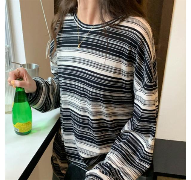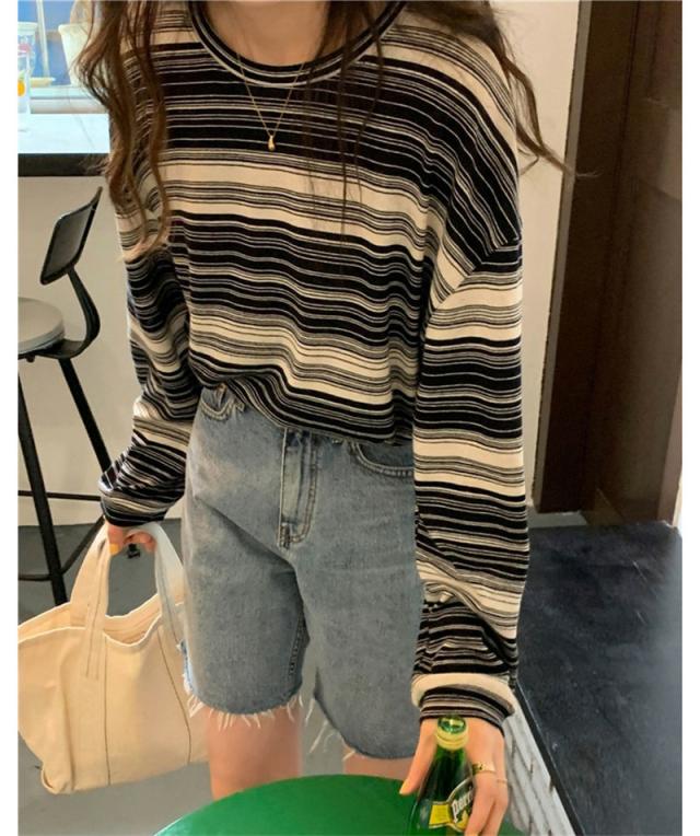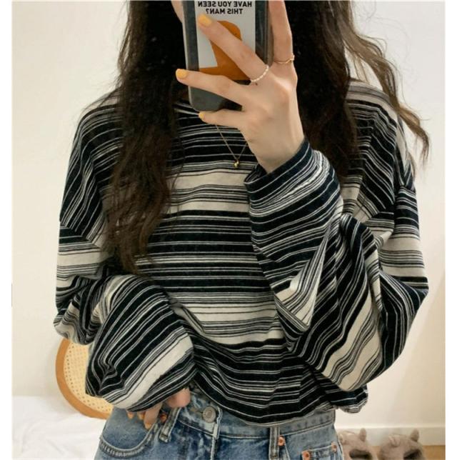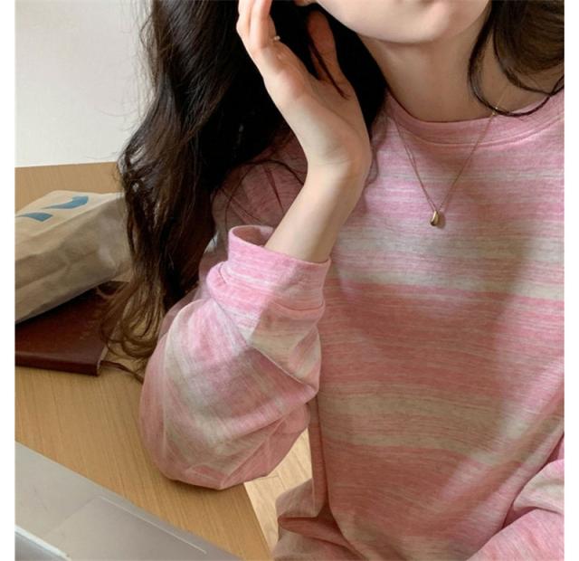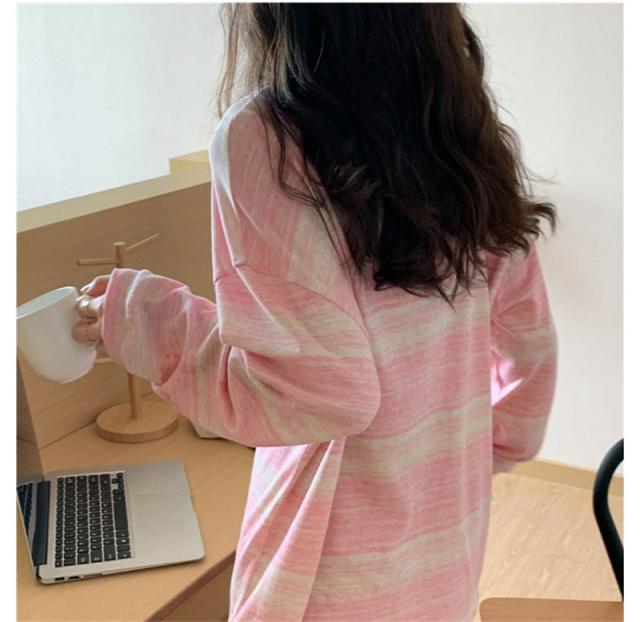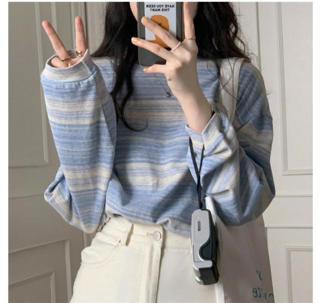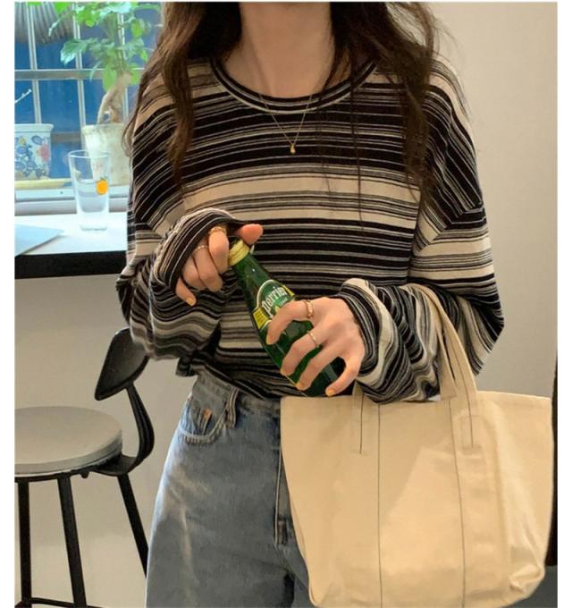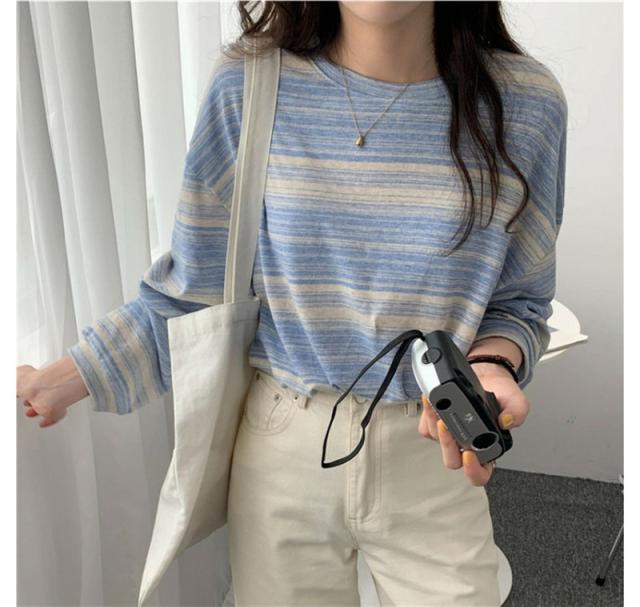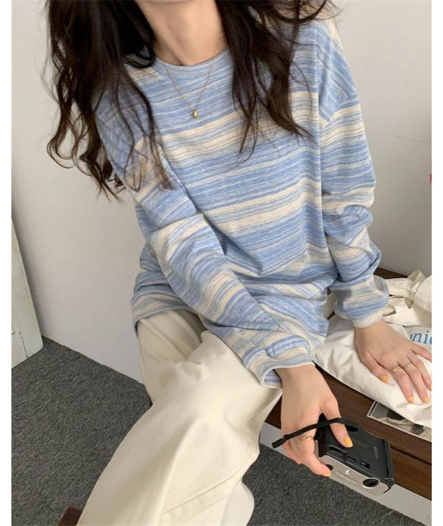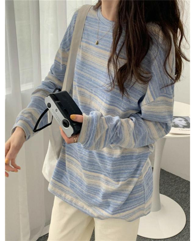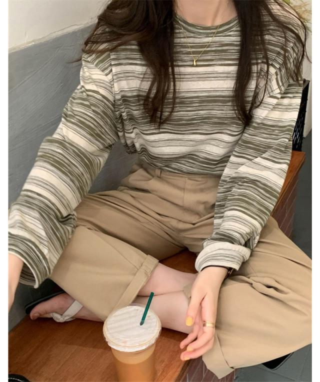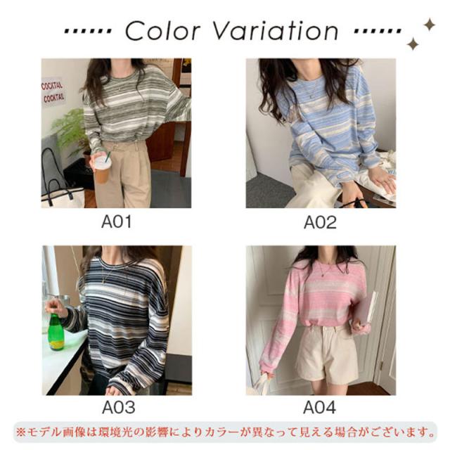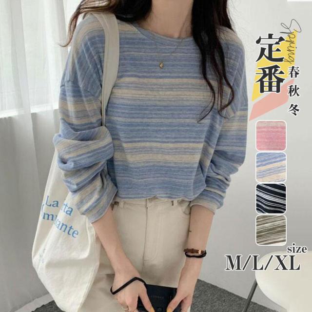 『2個ご購入で200円OFF』カットソー レディース tシャツ ストライプ トップス ゆるTシャツ 長袖 インナー 重ね着 レイヤード 薄手 プルオーバー かわいい