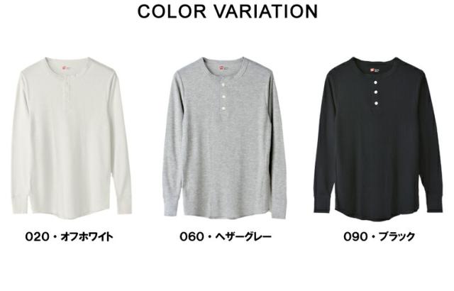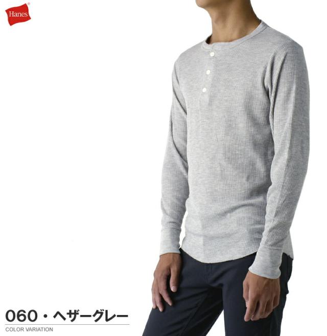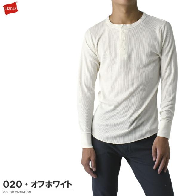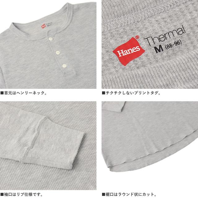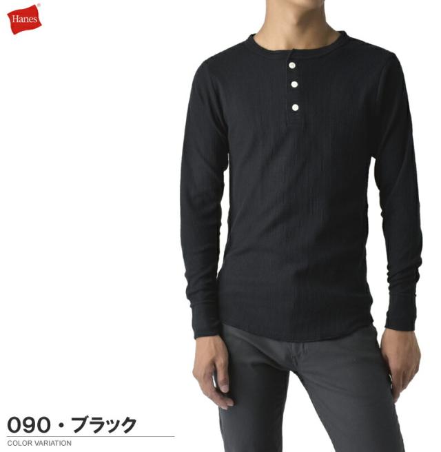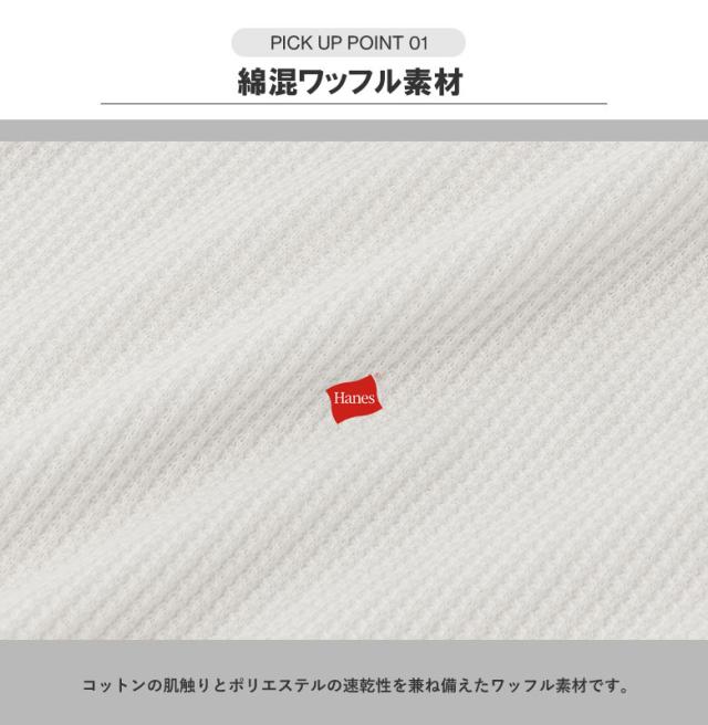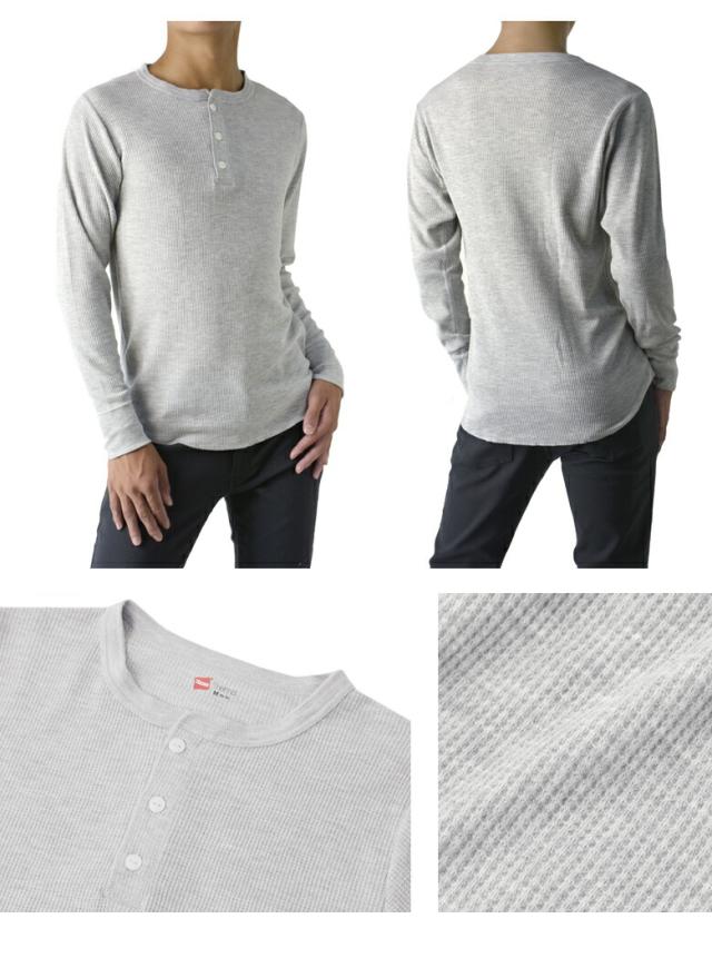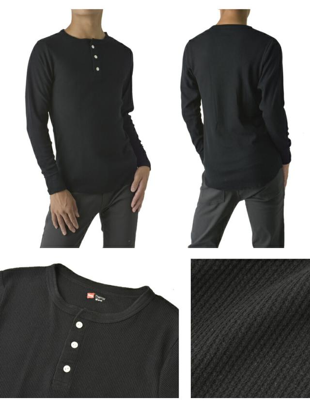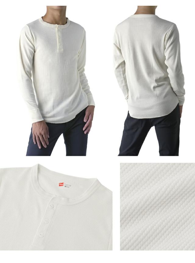 Tシャツ 長袖 メンズ ヘンリーネック Hanes ヘインズ サーマル 袖リブ ワッフル 綿混 HM4-Q502 正規品【H1F】【パケ1】【A】