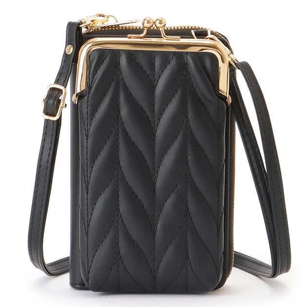 フェイクレザー キルティング がま口 ウォレット バッグ 女性 レディース 春 夏 秋 冬 ポシェット ポーチ サコッシュ スマホケース ヘリンボーン リーフ スクエア ショルダー ファスナー 財布
