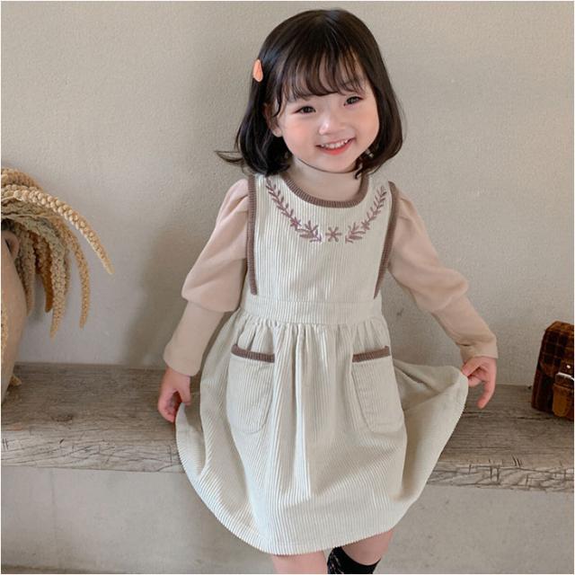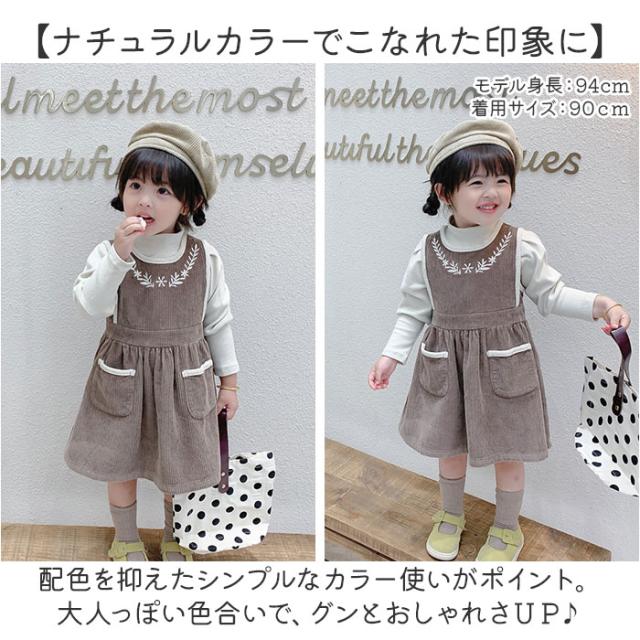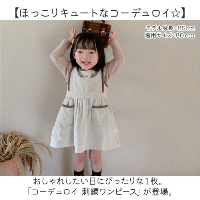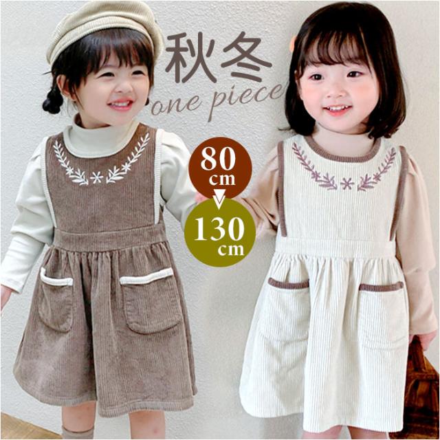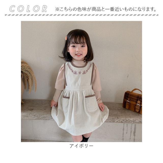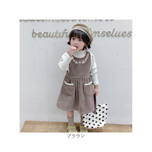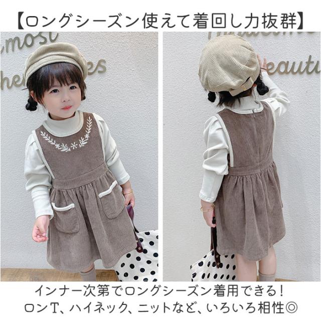 ワンピース キッズ 通販 コーデュロイワンピース 刺繍 厚手 ジャンパースカート コーデュロイ素材 スカート シンプル 無地 おしゃれ 女の子 可愛い かわいい 子供服 子ども服