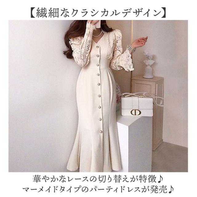 レディース マーメイド ドレス 長袖 通販 パーティードレス マーメイドドレス レディースワンピース ロングワンピース ワンピース ワンピ ロングスカート レース ロング丈 ロング