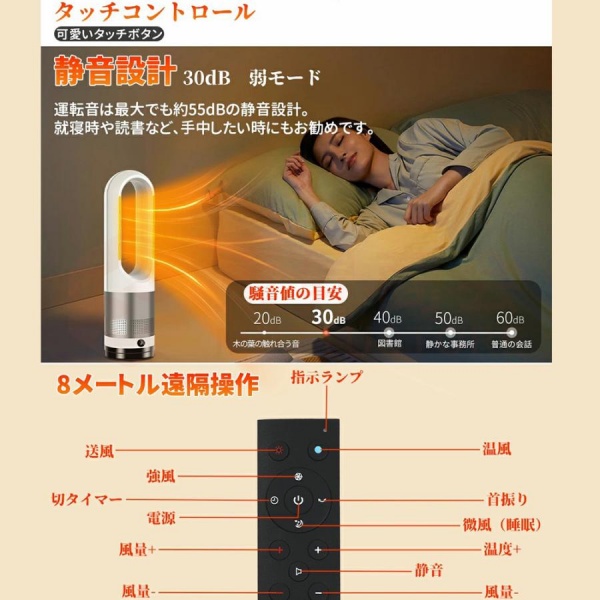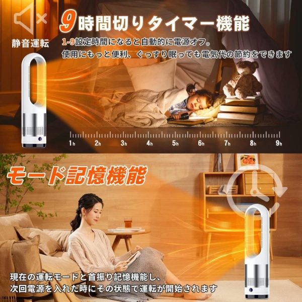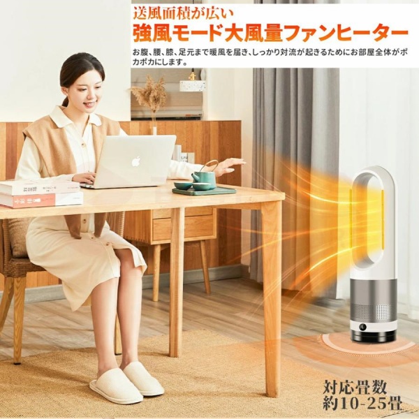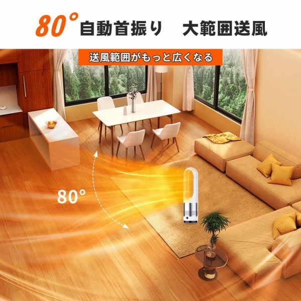 冷暖兼用 ヒーター 扇風機 羽なし 夏用 8段階涼風 3段階温風 扇風機 80°左右首振り 暖房器具 切タイマー ファンヒーター リモコン付 静音 タワーファン 冷暖風切替 11段階風量調節