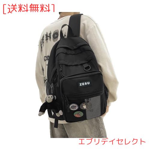 【ZESU】韓国リュック 大容量 通勤通学学生 男女兼用カジュアルバッグ 高校生 レディース (ブラック)