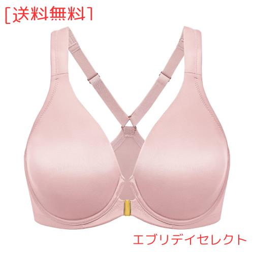 [DELIMIRA] フロントホック ブラジャー レディース 大きいサイズ サテン質感 ワイヤー入り パッドなし Tシャツブラ アドビローズ F85