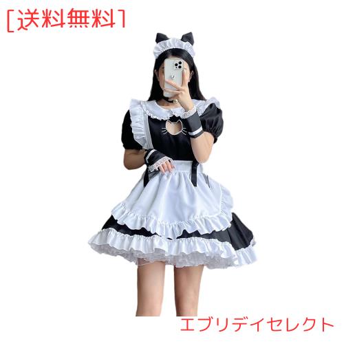 [YUEEI] メイド服 猫 胸空き レース コスプレ ハロウィン 仮装 ロリータ ワンピース 半袖 可愛い パーティー イベント カチューシャ 演出