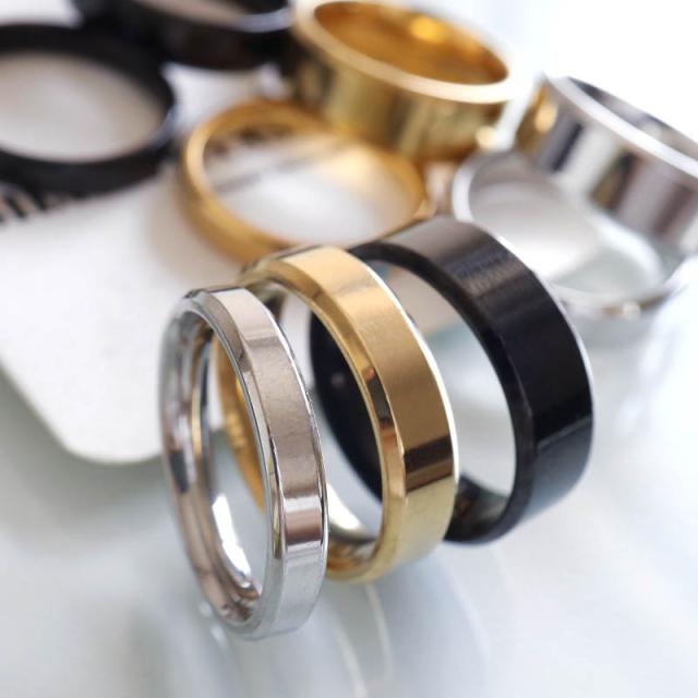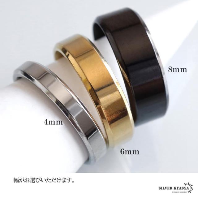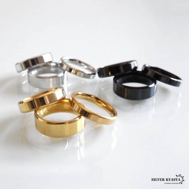 ステンレス 平打ちリング 色と幅が選べる 4mm 6mm 8mm ゴールド シルバー ブラック シンプルリング メタリック 細身 指輪 男女兼用 金アレ対応