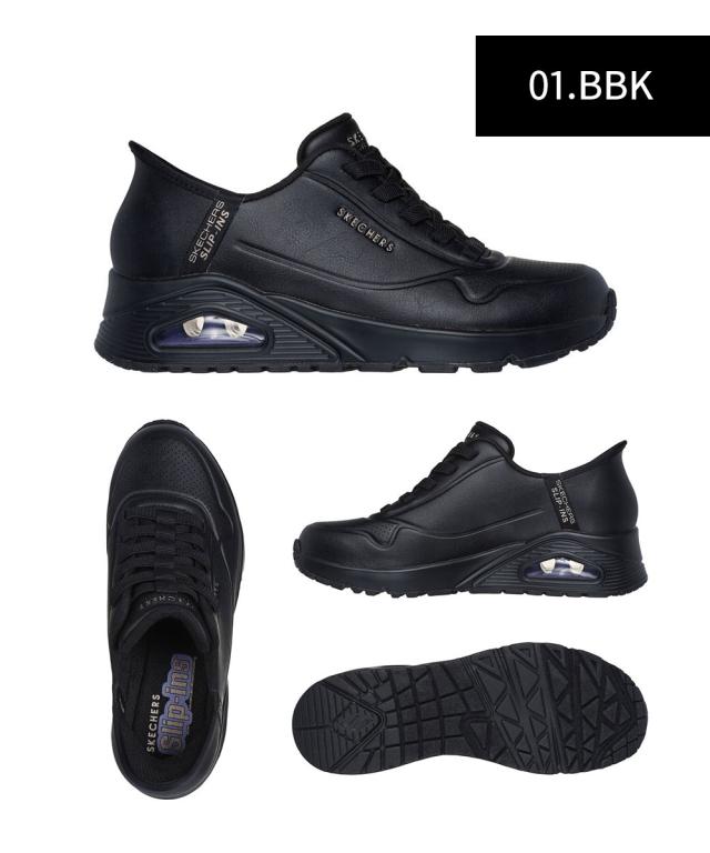 スケッチャーズ スリップインズ レディース スニーカー ローカット ハンズフリー 立ったまま履ける スリッポン エアークッション 履きやすい 歩きやすい コンフォート ウォーキング 小さいサイズ 大きいサイズ 黒 ブラック Skechers Slip-ins UNO-EASY AIR 177112