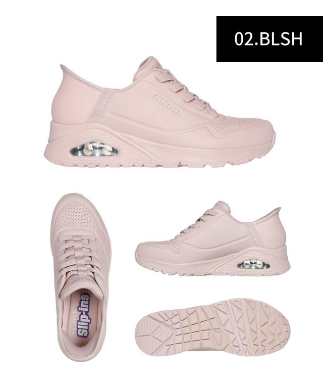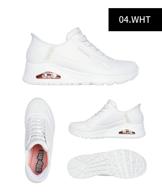 アイコニックな人気アイテムをさらに快適で履きやすくアレンジしたSkechers Street(スケッチャーズ ストリート) Hands Free Slip-ins(ハンズフリー スリップインズ): ウノ - イージー エア。独自のHeel Pillow(ヒールピロー)デザインを採用したファッションスニーカー。