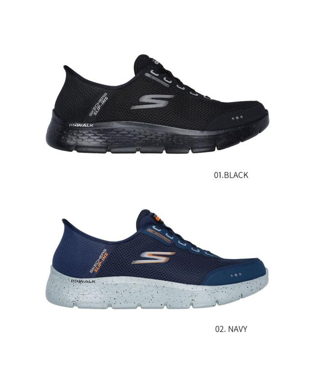 スケッチャーズ スリップインズ メンズ スニーカー 防水 ローカット ハンズフリー 立ったまま履ける スリッポン 疲れにくい 履きやすい 歩きやすい ウォーキング カジュアルシューズ ネイビー ブラック Skechers GO WALK FLEX-100% WATERPROOF SLIP-INS 216330ww