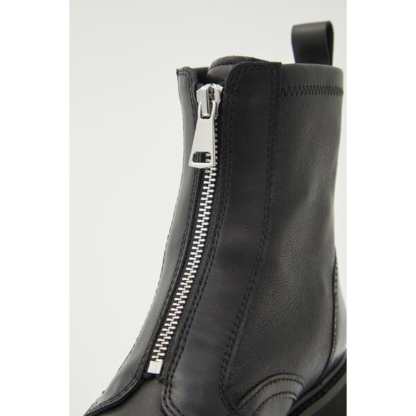 1足は備えておきたい、毎年人気の定番ストレッチミドルブーツが追加販売!トレンドに左右されないモードな雰囲気のFRONT ZIPデザイン&ラグソールがポイントのカジュアルブーツ。窮屈感のないストレッチ性のあるシープレザーコンビでソフトでしなかやな履き心地です。見た目以上に軽量なのも◎どんなスタイリングにも相性抜群です。