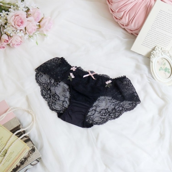 全体に花柄ストレッチレースを使用し、シンプルながらもエレガントさを演出。高級感のあるレーシーなディテールと柄行きを活かしたワントーンでまとめることで、上品でレディな雰囲気に仕上がりました。レースをふんだんに使用することで肌触りも優しく、お洋服に響きにくいアイテムに。