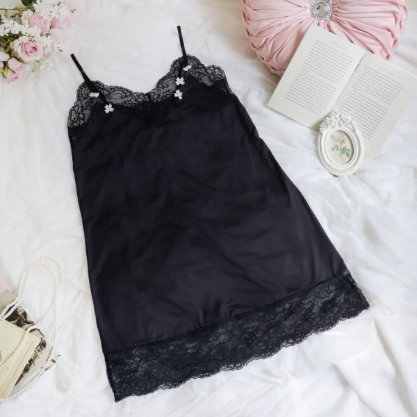 花柄ストレッチレースを胸元からバック部分、裾にあしらい、シンプルながらもエレガントさを演出。高級感のあるレーシーなディテールと柄行きを活かしたワントーンでまとめることで、上品でレディな雰囲気に仕上がりました。