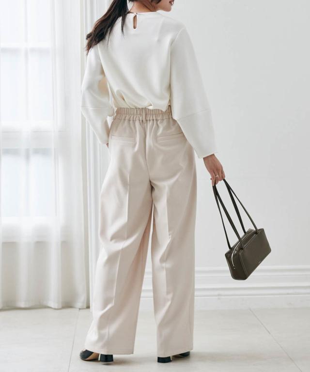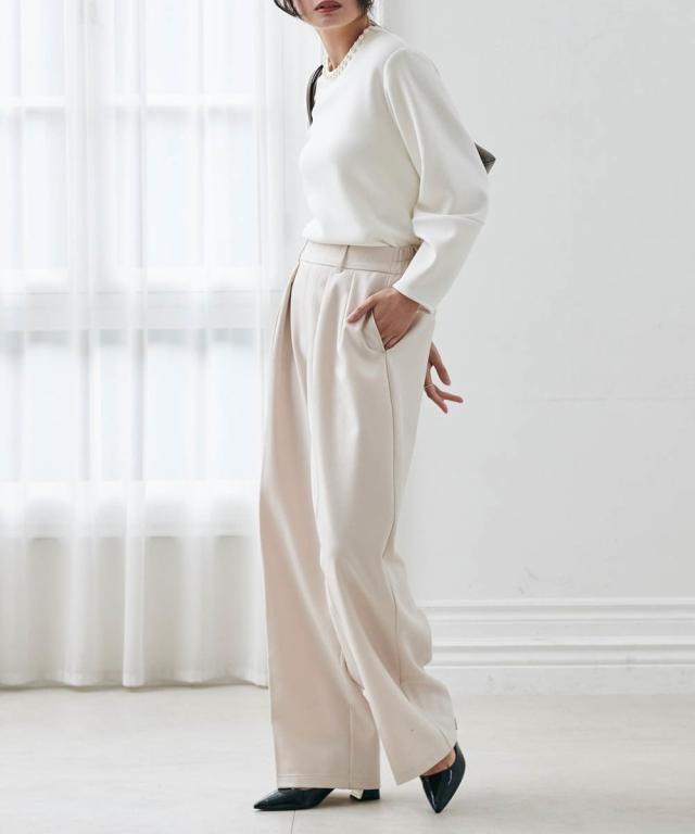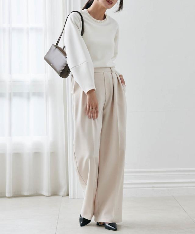 ・カットソーでもキレイ見えし華やかな印象に。