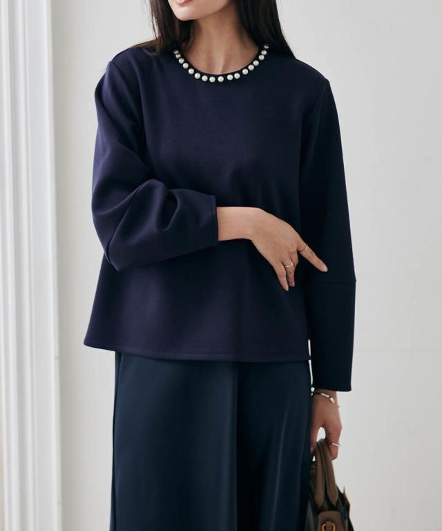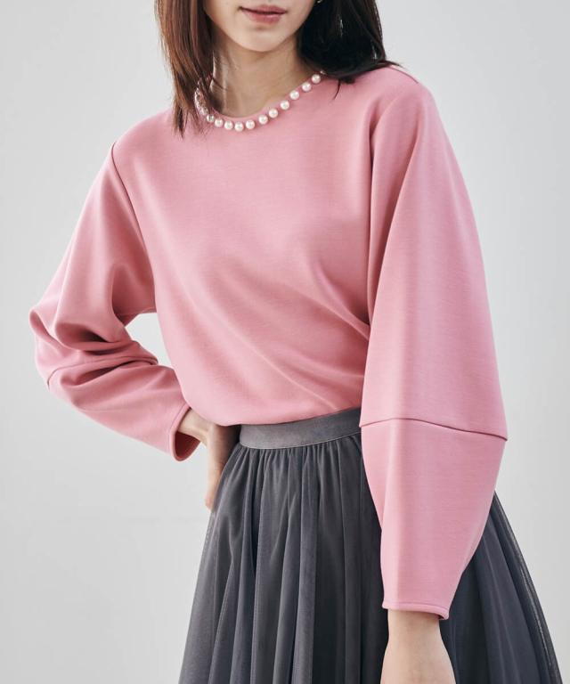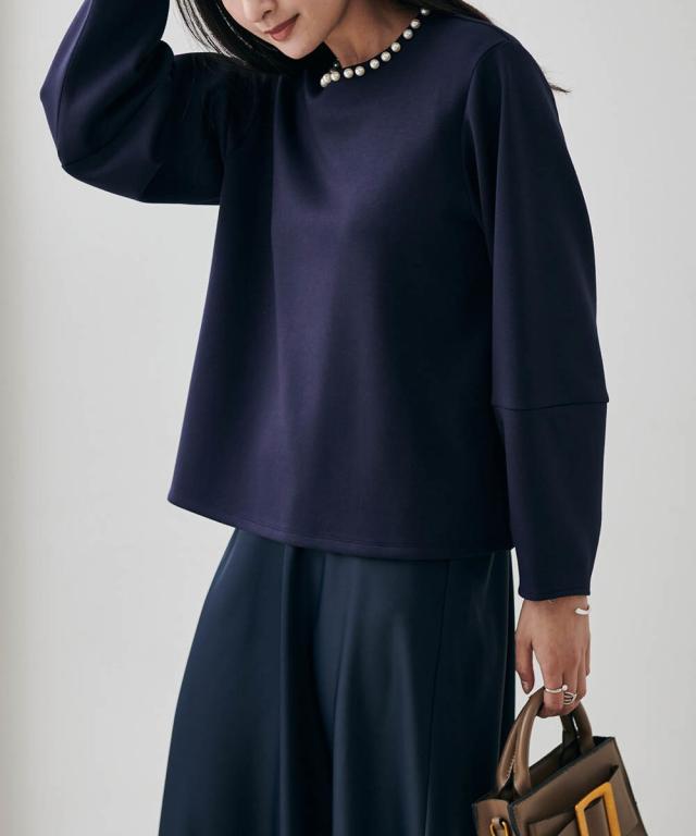 HSパール調ネックデザインプルオーバー
