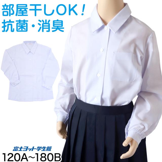 中学生 高校生 蛍光白 TioTio 長袖 角襟 ブラウス スクールブラウス 120A〜180B 富士ヨット スクールシャツ 通学 女の子 女子 学生 130 140 145 150 155 160 165 170 175