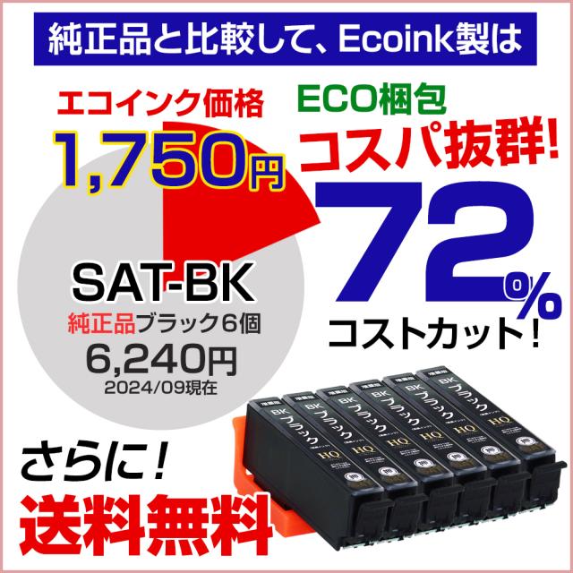 SAT-BK×6個 増量版 SAT サツマイモ エコプライス エコ梱包 互換インクカートリッジ ブラック 6個セット エプソン 染料ブラック EP-712A EP-713A EP-714A EP-715A EP-716A EP-812A EP-813A EP-814A EP-815A EP-816A エプソン インクカートリッジ SAT-BK×6 ECO梱包