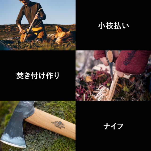 スモール ハチェットは全てのグレンスフォッシュの斧の中で最軽量モデルです。小さいながらも焚き付け作りから小枝払い、ナイフとしても機能します。このスモールハチェットは鍛冶職人でありながら釣り人でもあるレナート・ペッテションによって「軽量ながら本物の感触を損なわない斧を造りたい」という理念の元に開発されました。