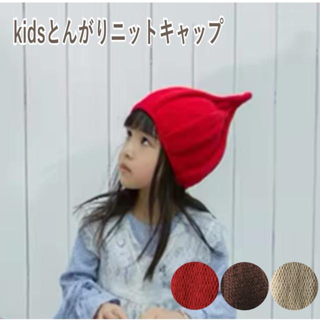 こども とんがりニット帽 キッズ 帽子 秋冬 ニットキャップ 2歳 3歳 4歳 防寒 あったか 毛糸 ニットキャップ どんぐり かわいい