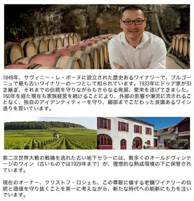 【1849年にアルベール・ブレノがサヴィニー・レ・ボーヌに設立したドゥーデ・ノーダンは、ブルゴーニュで最も古いワインメゾンの1つです。1933年にドゥーデ家が買収し、伝統と卓越性の尊重という基本的価値観を守りながら、メゾンを発展、拡大してきました。ドゥーデ・ノーダンの現社長であるクリストフ・ロシェは、この高く評価されているメゾンの価値を維持しながら、再構築することに尽力しています。