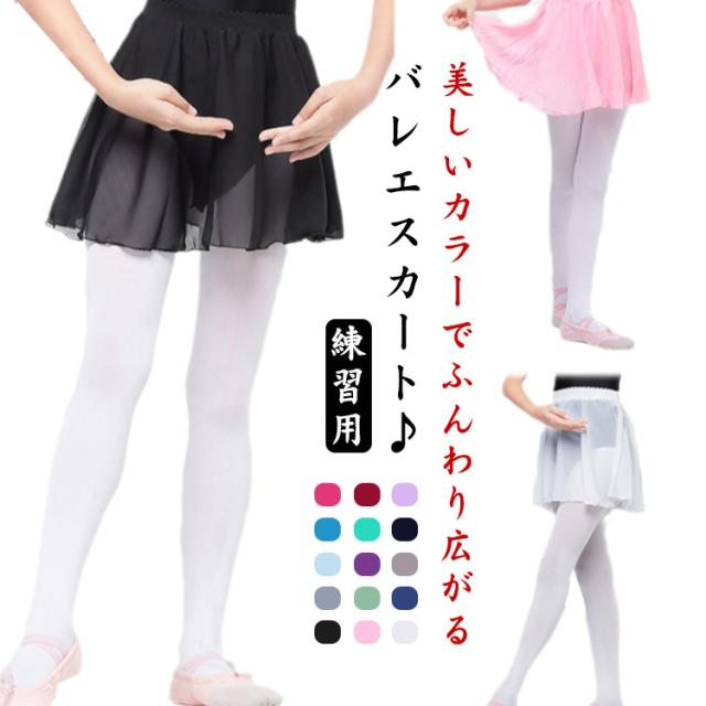 バレエスカート レディース 子供 ウエストゴム バレエ用スカート チュチュ キッズ ジュニア 大人 バレエレッスン用 練習用 発表会 バレエ用品 シフォンスカート プルオンスカート ダンス衣装 お洒落 無地 送料無料