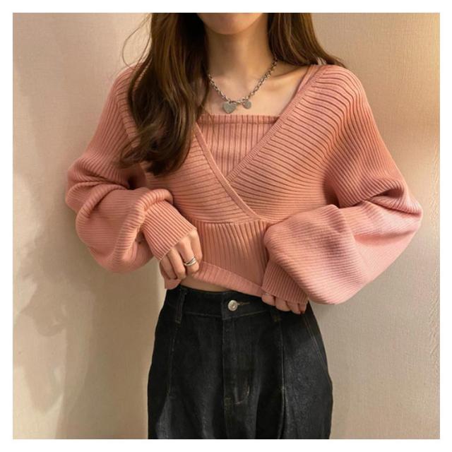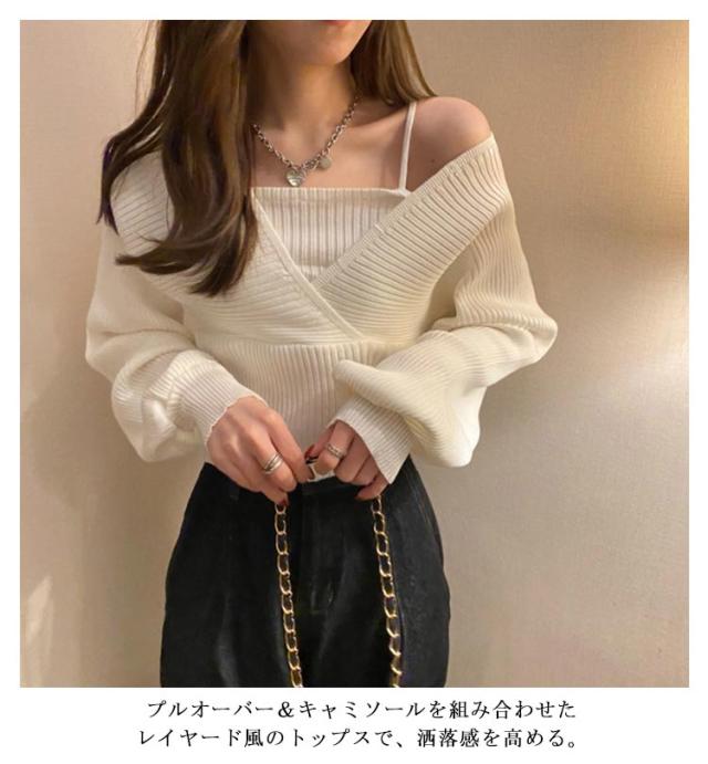 | 話題のレイヤード風ニットトップス。 プルオーバー&キャミソールを組み合わせたレイヤード風のトップスで、洒落感を高める。 ふんわりと広がるバルーンスリーブが可愛らしさをさらにアップデート。 ニットなので伸縮性もあります。 タックインしなくてもすっきり見える丈感がうれしい。 | |