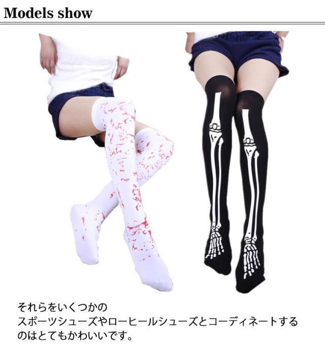 ハロウィン ニーハイソックス 靴下 仮装 コスプレ 小道具 衣装 舞台 余興 面白い イベント パーティ ソックス おもしろ靴下 おもしろい ニーハイ ソックス 骨 血 メンズ レディース 子供 おしゃれ かわいい ストッキング ギフト プレゼント
