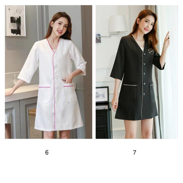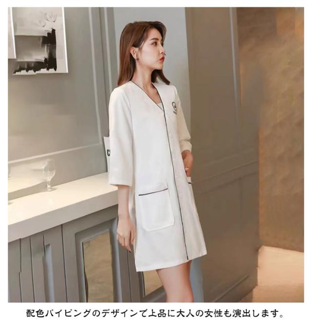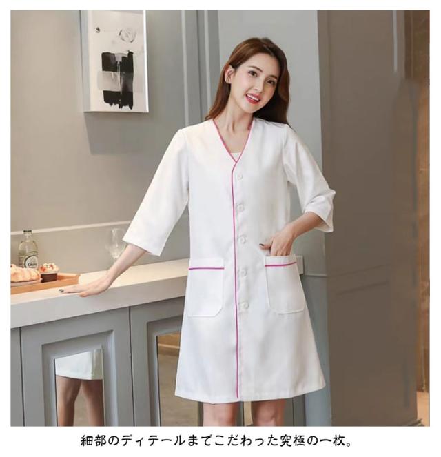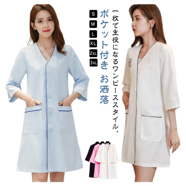 ワンピース エステ 美容師 看護師用 透けにくい 女性用 ユニフォーム ナース 制服 美容院 ポケット付き お洒落 歯科衛生士 仕事用 介護士 作業服 事務服 大きいサイズ