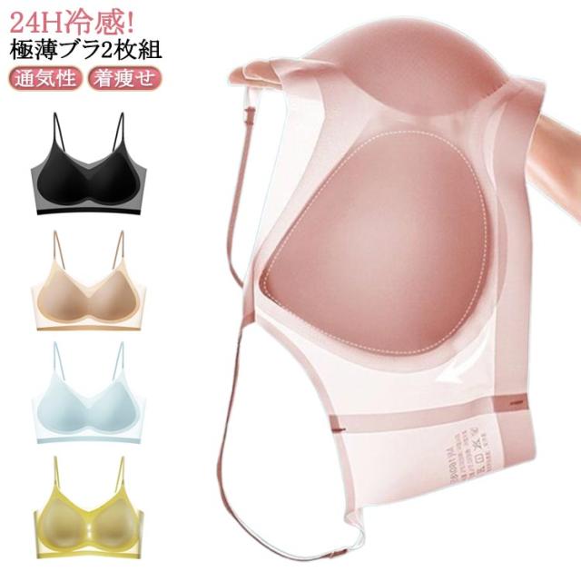 おやすみブラ 胸を小さく見える 2枚組 シームレス ブラジャー 2枚組 着痩せ 極薄 ナイトブラ 楽ちん インナー ブラ 夏用 レディース 下着 接触冷感 スポーツブラ 通気性 涼しい クール 蒸れない ブラトップ