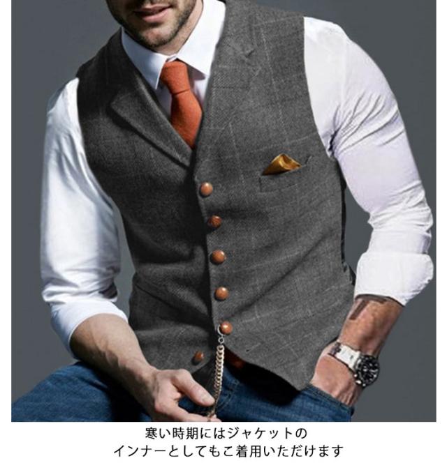 選べる襟 ベスト レトロ チェック メンズベスト スリム メンズ 選べる襟 紳士服 音楽会 ビジネス フォーマル 細身 スーツベスト メンズファッション アメカジ ジレベスト おしゃれ 二次会 S M L XL 2XL